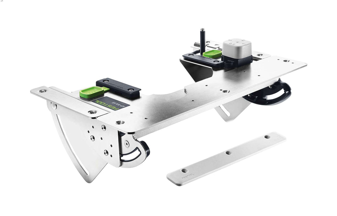 Adapter plate for using the KA 65 Conturo as a stationary machine with the MFT workbench. Mounting plate complete with additional roller and 15 guide plates.
